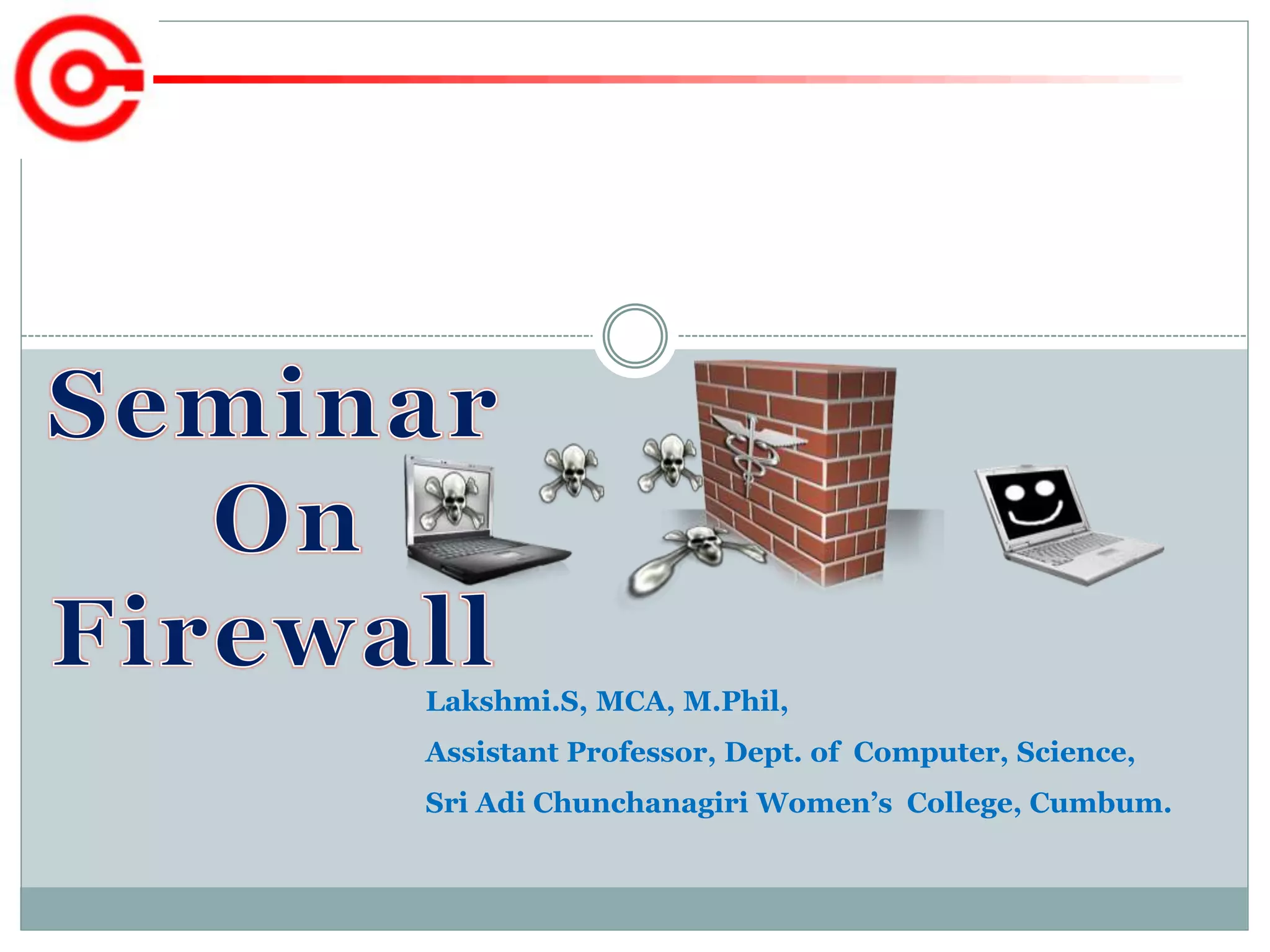 Lakshmi.S presents information on firewalls including definitions, types, and concepts. A firewall filters internet access to protect private networks. There are software and hardware firewalls. Types include packet filtering routers, application-level gateways, and circuit-level gateways. Firewalls concentrate security, filter unnecessary protocols, hide internal information, and require connections through the firewall. While firewalls improve security, they can hamper some network access and concentrating security in one location means compromising the firewall poses risks.