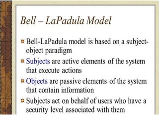 The document explains firewalls as crucial network security systems that regulate network traffic based on predetermined security rules to prevent unauthorized access. It covers various types of firewalls including packet filters, circuit-level gateways, and application-level gateways, along with their functions, advantages, and vulnerabilities. Additionally, the document discusses access control methodologies like the Bell–LaPadula model and the Common Criteria framework for evaluating security in computer systems.