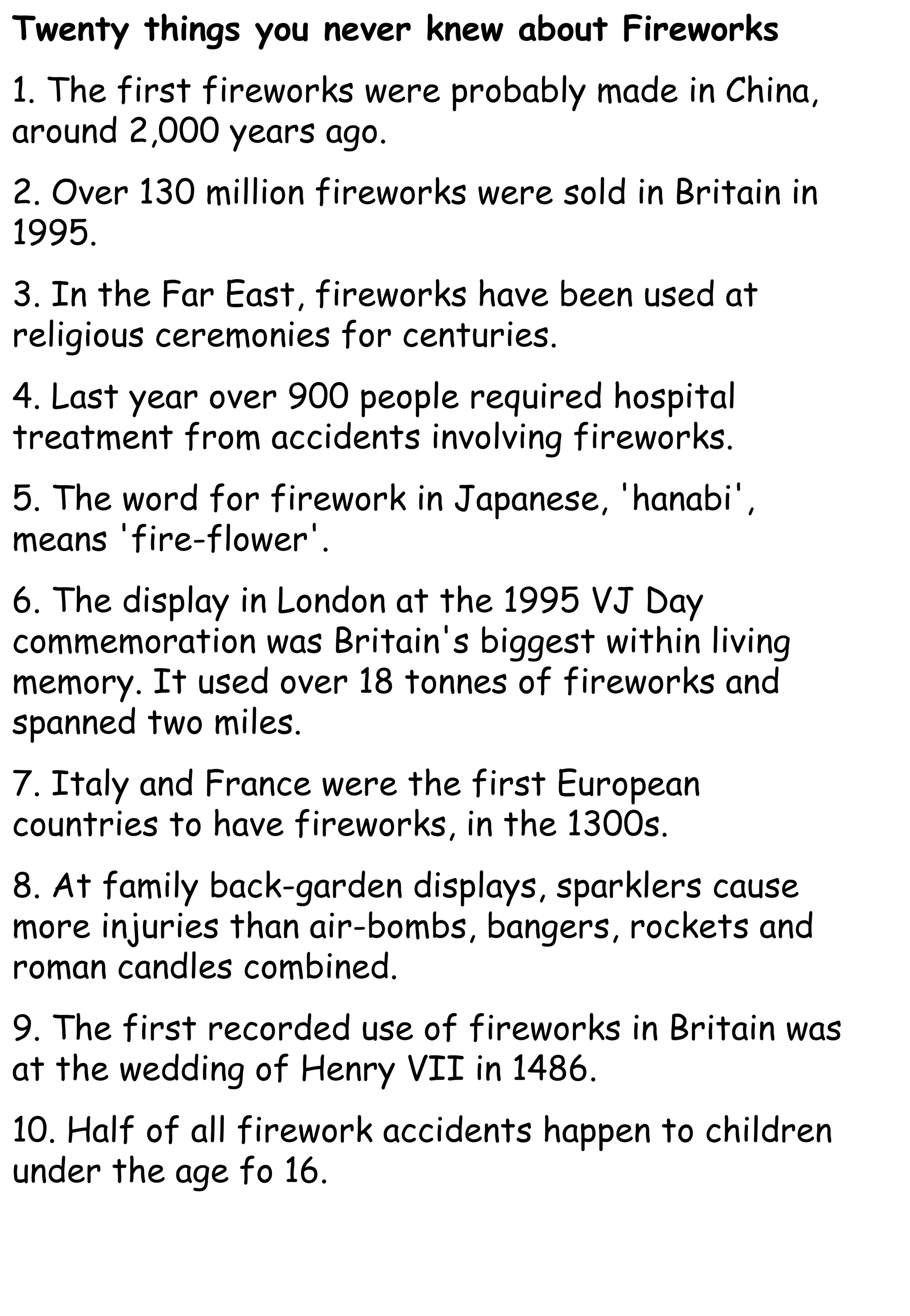 The document provides safety tips for using sparklers, particularly around children. It advises that sparklers should never be given to children under 5 as they cannot use them safely. When children are using sparklers, adults should closely supervise, provide gloves, avoid loose clothing that could catch fire, teach children to hold sparklers away from their body and not run with them. It also provides first aid tips for burns, advising to cool with water and seek medical help when needed. The key message is that sparklers should be kept in safe hands and used carefully, as they can reach very high temperatures.