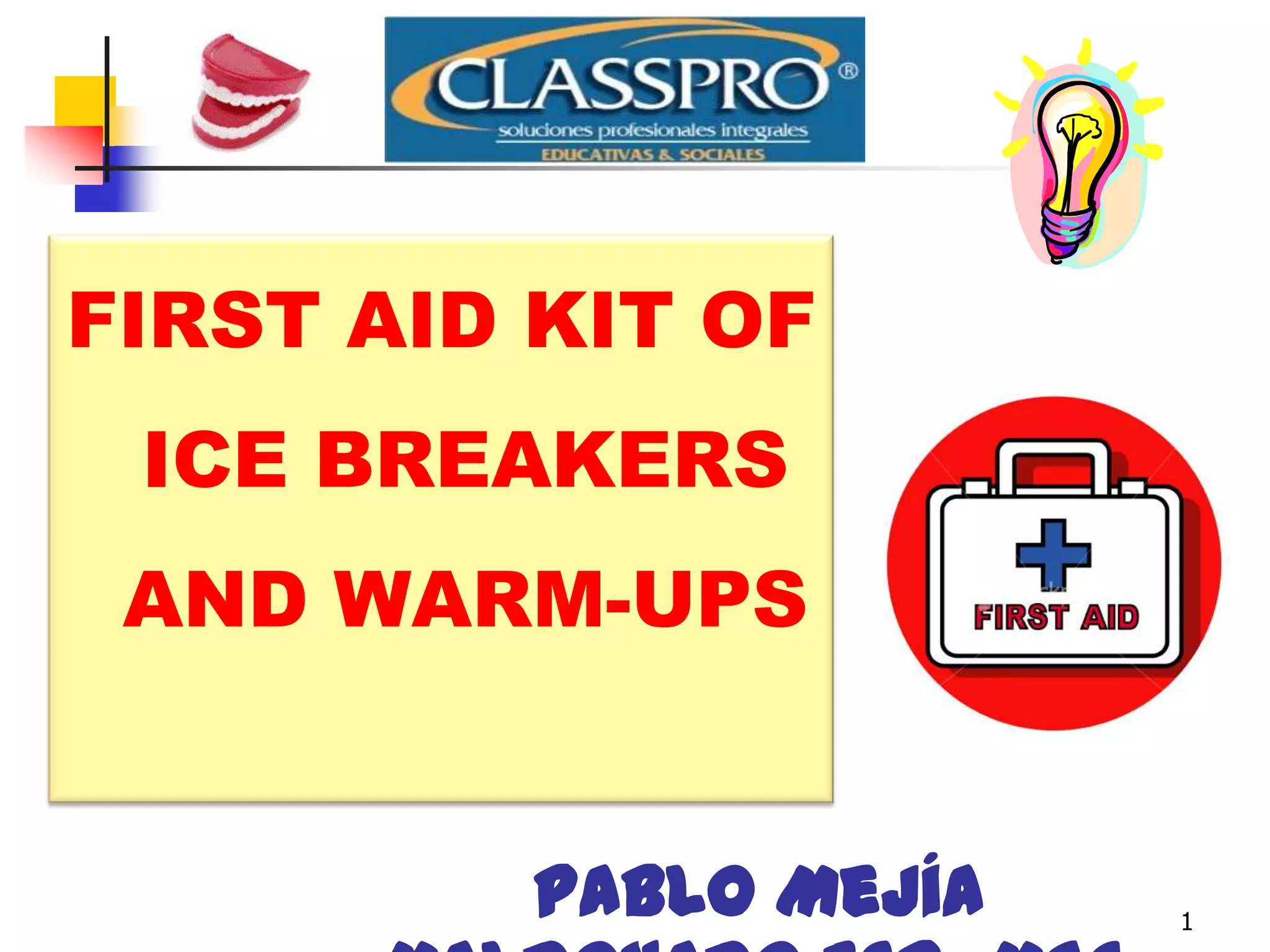 The document provides a collection of activities and games designed as ice breakers and warm-ups for classroom settings, aimed at fostering a positive atmosphere and reducing anxiety among students. These activities are crafted to engage students, activate their prior knowledge, and enhance their language skills through collaborative efforts. Each suggested activity varies in style and execution, offering quick and easy ways to motivate students at the beginning of classes.
