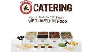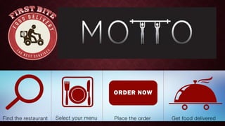 First Bite is a food delivery chain that delivers food from street vendors to upscale restaurants. It focuses on online food ordering, restaurant booking, catering for premium users, and subscription services. First Bite partners with over 40,000 restaurants worldwide and allows users to view menus, photos and reviews when ordering through its mobile and website platforms.