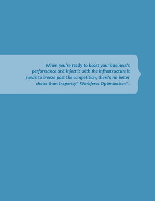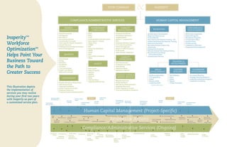 Insperity Workforce Optimization is a bundled service that maximizes employee productivity and takes responsibilities off business owners' plates. It provides comprehensive HR services like benefits administration, payroll processing, and training programs. Business owners work with a dedicated team including a Business Performance Advisor, HR specialist, and other experts to develop a customized plan. This allows owners to focus on growth while Insperity handles compliance and administrative tasks. The co-employment model forms a three-way relationship where Insperity shares employer responsibilities to give clients a competitive edge.