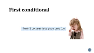 The document contains 5 conditional sentences using "if" to talk about possible situations and their consequences. The sentences discuss exercising daily and fitness, wearing headphones and not noticing others, visiting New York City, seeing a film, and losing weight by avoiding sugar.