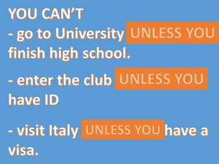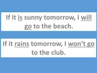 The document explains alternative words to use in first conditional sentences, such as 'when' for definite future conditions and 'as soon as' for emphasizing immediacy. It illustrates these points with examples distinguishing between uncertain and certain future scenarios. Overall, it provides clarity on enhancing conditional sentences in English.