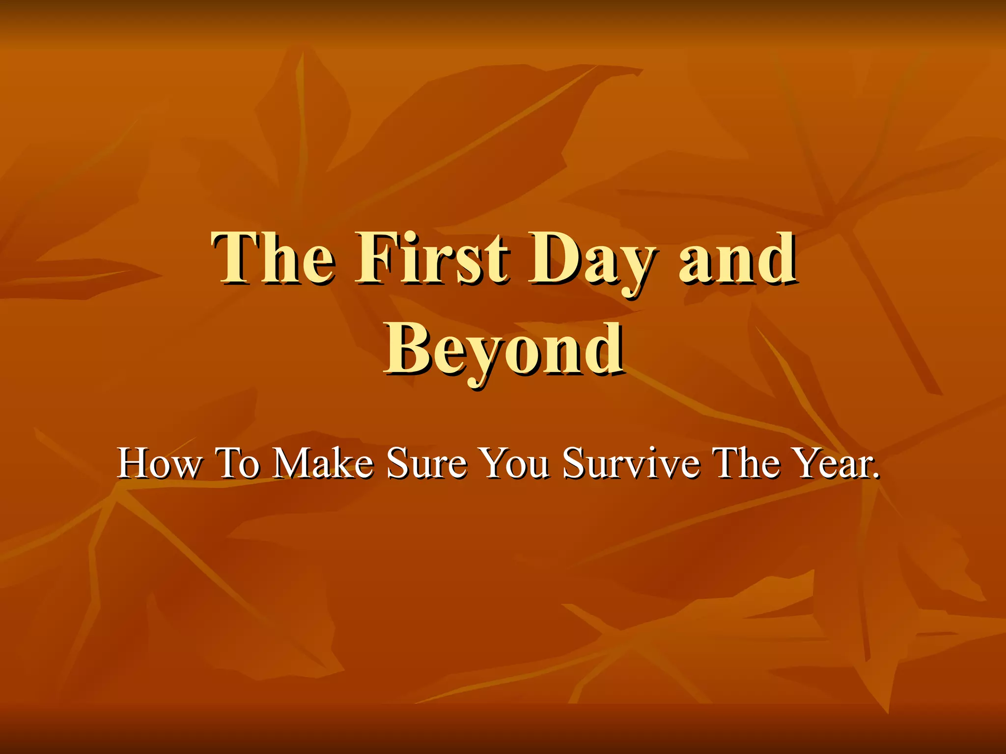 The document provides guidance for teachers on how to prepare for the first day and beyond in the school year. It recommends focusing on getting to know students, preparing the classroom space, familiarizing yourself with the curriculum, and taking care of your own well-being. Teachers are advised to read student records, connect with students before the first day, prepare class materials, create classroom routines, think about diagnostic assessments for the first month, and plan ahead while also making self-care a priority.