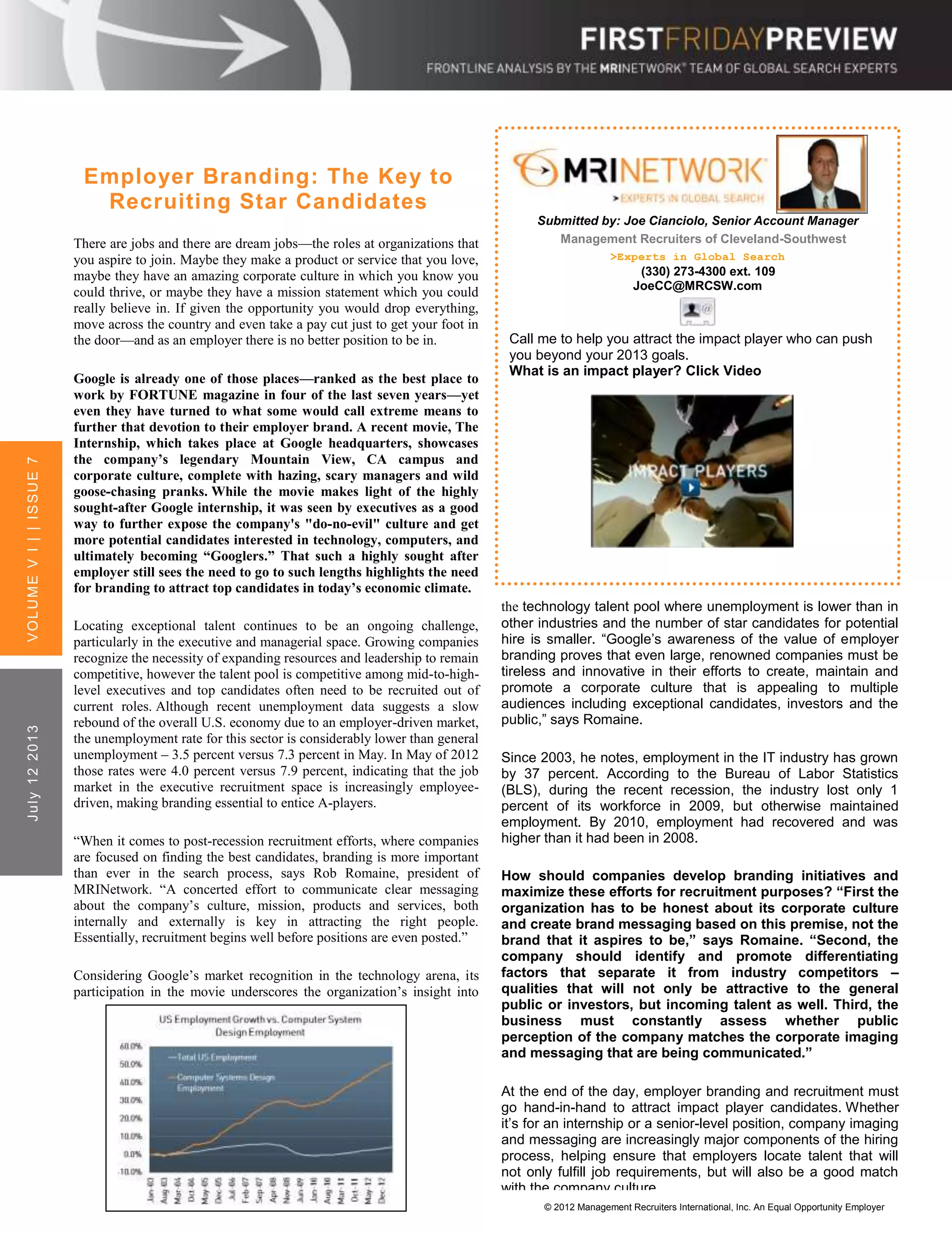 Employer branding is important for attracting top talent. Even Google, which is ranked one of the best places to work, promotes its culture through movies to appeal to potential candidates. A strong employer brand communicates an organization's culture, mission and values to current and prospective employees. Developing an authentic employer brand that highlights differentiating factors is key for recruitment, especially as the job market becomes increasingly competitive for top executive and technical talent.