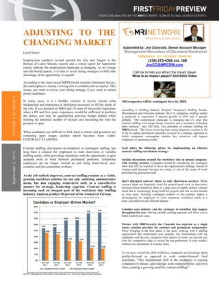 - Using contract staffing/temporary workers is becoming a more viable option, as it allows companies to meet changing staffing needs in a cost-effective way while providing work for candidates. Contract workers are no longer viewed as just secondary employees and many companies expect 50% of their workforce to be contingent hires by 2020.