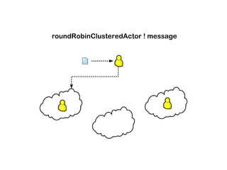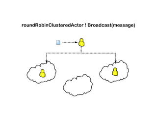 Akka 2.0 allows actors to be distributed across multiple nodes in a cluster in a transparent manner. It introduces new concepts like actor addresses and deployment configurations. The clustering functionality leverages ZooKeeper for distributed coordination and stores serialized actor factories. This allows actors to be dynamically created, migrated, and replicated across nodes for fault tolerance and load balancing. Composable futures also allow combining results from multiple asynchronous messages.