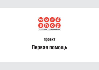 Документ представляет проект «Первая помощь», направленный на популяризацию оказания первой помощи через фирменный стиль, включающий футболки, плакаты и другие носители с графическими иллюстрациями и инструкциями. Основная задача проекта – сделать алгоритм первой помощи доступным и запоминающимся для целевой аудитории, включая школьников и студентов. Также предусмотрено создание персонажа, который будет представлять информацию о вызове скорой помощи.