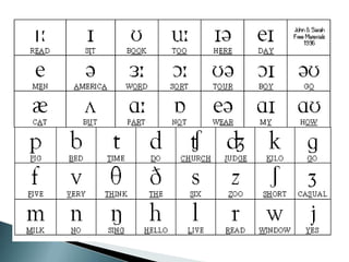 The document discusses strategies for teaching pronunciation in English, including describing phonemes, consonant and vowel sounds, and strategies for practicing pronunciation like role plays, dictation, and drilling exercises. It also addresses assessing student pronunciation through partial exams, portfolios, and classroom activities. The goal is to help both native and non-native English speakers produce comprehensible English phonemes.