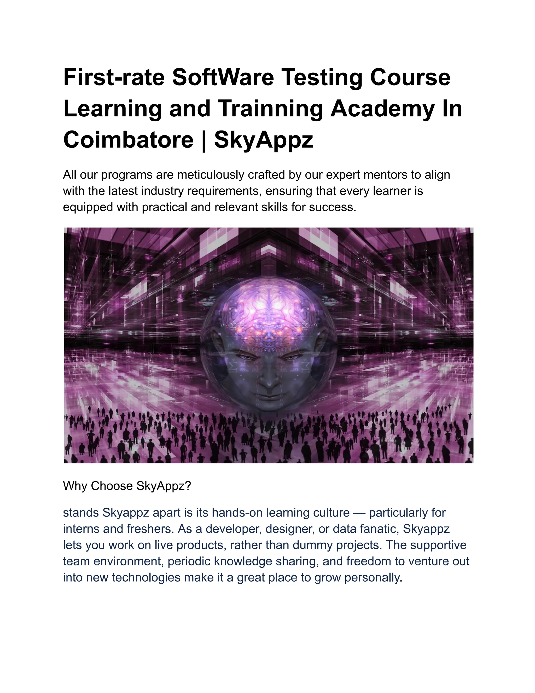"description": "Upgrade your skills at Skyappz Academy, Coimbatore. Learn