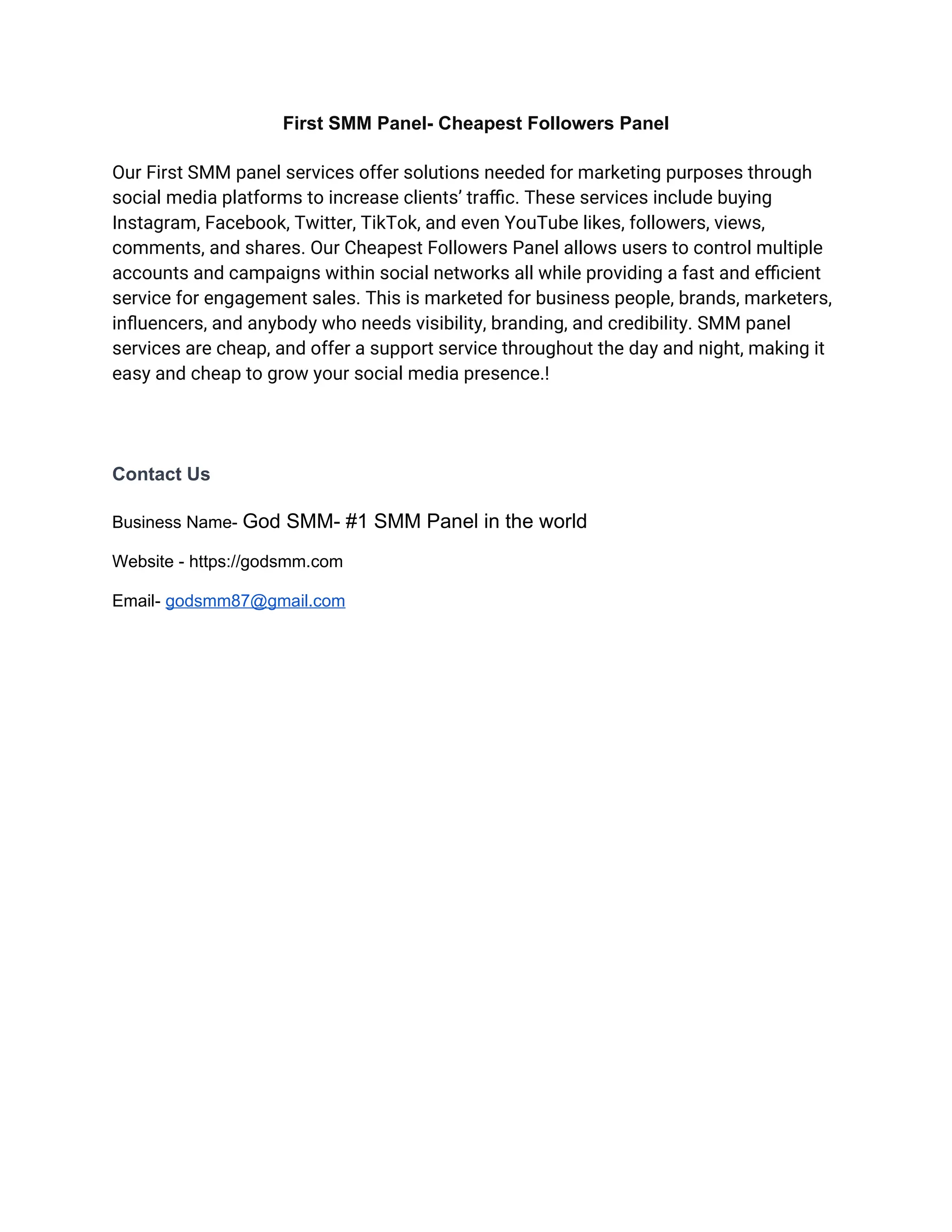 We offer the First SMM Panel services for your social media advertising needs. Our Cheapest Followers Panel focused on specific goals – you may need to gain more followers, get more interactions, or improve branding – and are highly affordable compared to competitors.