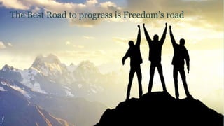 This document provides advice on achieving goals and progress by working hard each day as if someone else is trying to take your work away, believing in what you do, and living in the present rather than dwelling on the past or future. The first steps towards success are to pursue freedom and have a clear plan for achieving your goals.