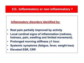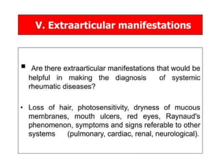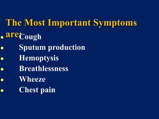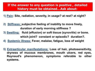 * Usually a single symptom, occasionally more than one complaints eg: chest