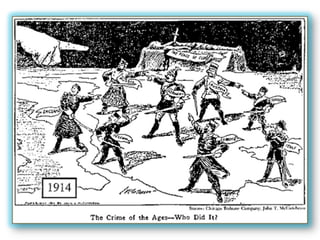 The document discusses Germany's attitude towards war in 1914. It argues that Germany's enemies (France, Britain, Russia) were not fully prepared for war at the time, while Germany's allies (Austria, Italy, Turkey, Romania) were ready to support Germany. It states that Germany should take advantage of this favorable moment and resolve conflicts of interest through war, regardless of the provocation, in order to secure its future as the leader of European policy. Germany's enemies were France, Britain, Russia, while its allies were considered Austria, Italy, Turkey, Romania. The document advocates for Germany to provoke war in 1914 to maintain control over European affairs while its opponents were perceived as weak.
