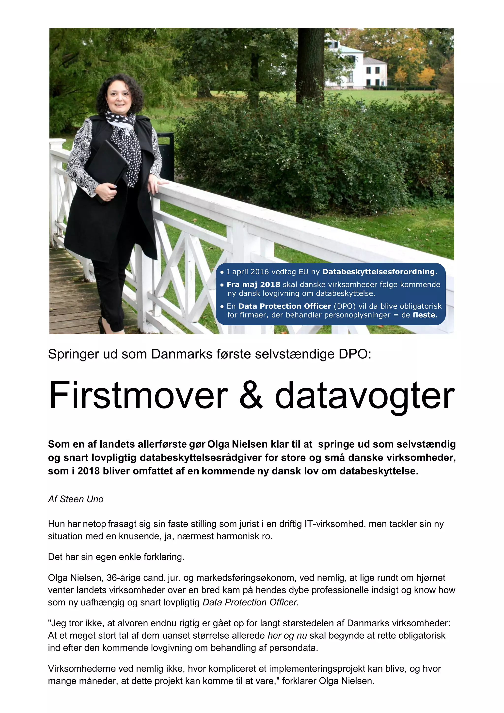 Pr. 1. november slår Olga Nielsen således dørene op for virksomheden Persondatabeskyttelse.nu