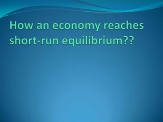 This document provides an overview of key concepts in the basic Keynesian macroeconomic model. It defines planned aggregate expenditure and its components. It then explains how the economy reaches short-run equilibrium where planned spending equals output. It demonstrates how a change in an autonomous spending component, like consumption, can cause the equilibrium to change and create an output gap. The income-expenditure multiplier is introduced to show how a $1 change in spending can impact output. Finally, it discusses how fiscal policy tools like government spending or tax changes can be used to address output gaps according to the Keynesian model.