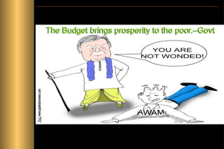 Fiscal policy uses government spending and taxation to influence the economy. It aims to achieve economic stability without inflation or deflation. The government collects revenues through taxes, fees, fines, and loans, then spends money on productive investments like infrastructure and non-productive services like education and health. The budget shows estimated receipts and expenditures. Fiscal policy can be neutral, expansionary, or contractionary depending on whether spending equals, exceeds, or is less than tax revenue. While fiscal policy aims to evenly distribute wealth and resources, limitations include inadequate data and delayed decision-making.