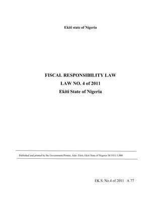 This document outlines the Fiscal Responsibility Law passed by the Ekiti State House of Assembly in Nigeria. Some key points: