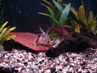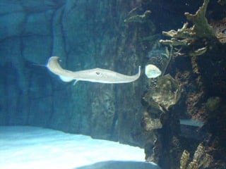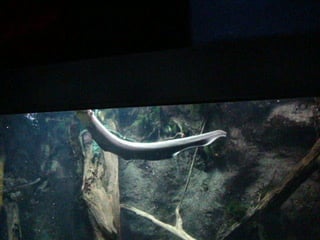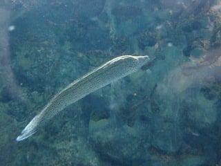 There are several forms of fish locomotion. The most common is carangiform locomotion, where fish sweep their caudal fin from side to side to move forward. Angulliform locomotion is used by fish with eel-like bodies, who send waves along their body length to push against water and propel themselves. Some stiff-bodied fish use ostraciform locomotion, wiggling their fins slowly. A few fish use labriform locomotion, paddling with pectoral fins. Ballistiform locomotion involves sending waves along fins like the anal fin, allowing knifefish to swim backward by reversing wave direction.