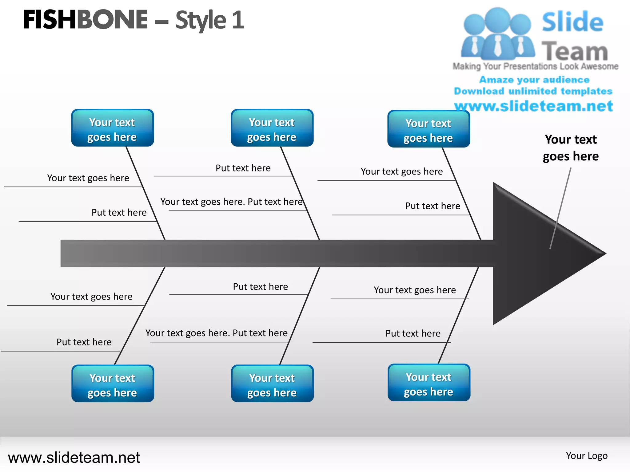 The document provides instructions for formatting a fishbone diagram in PowerPoint. It includes 27 steps to arrange text boxes and arrows in a specific layout resembling a fishbone or Ishikawa diagram. The diagram is used to explore the potential causes of a certain effect or problem. Users can customize the template by adding or editing text in each box and adjusting properties like colors and styles.