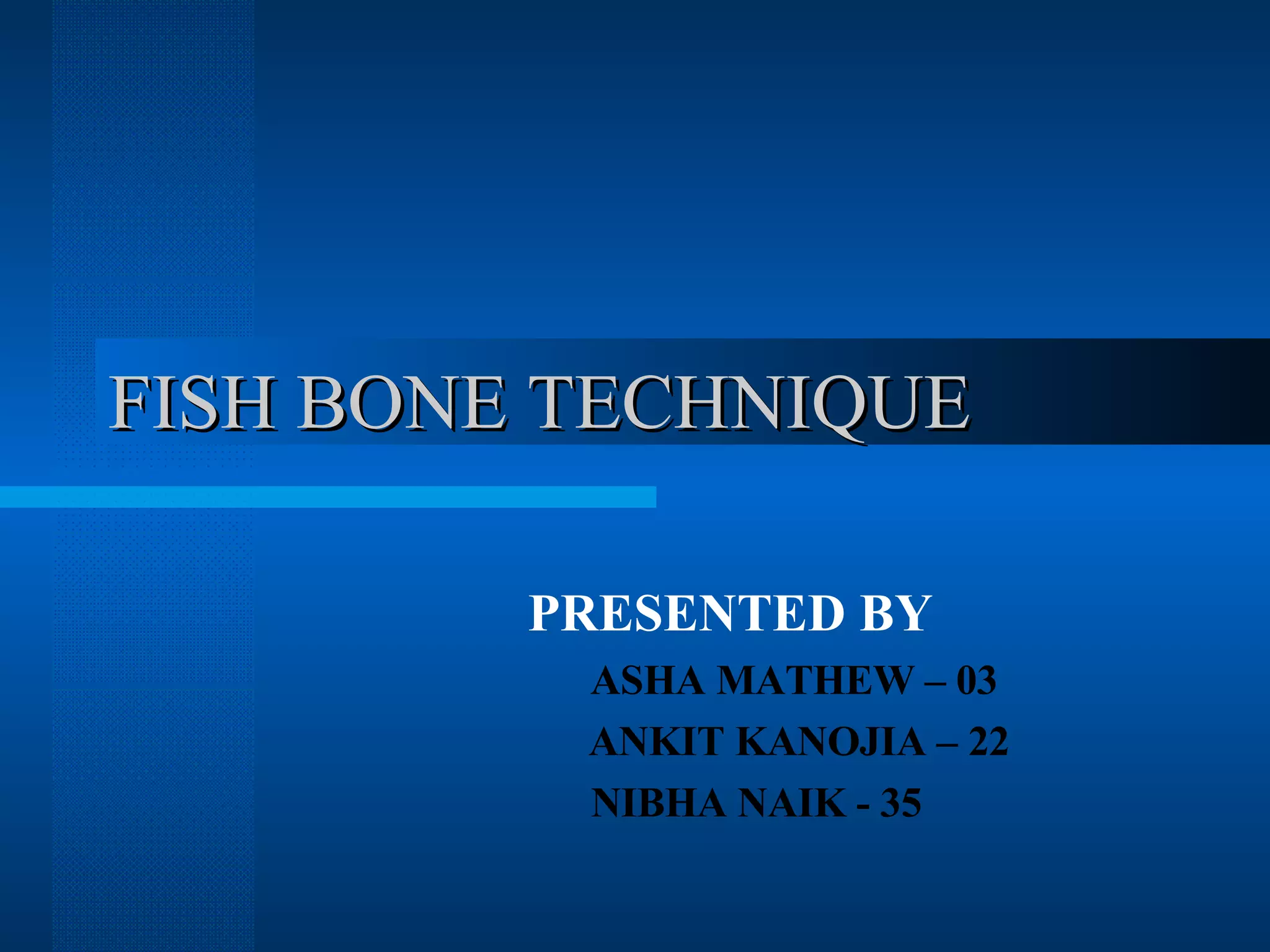 The document discusses the fish bone technique, also known as the cause and effect diagram or root cause analysis. It was invented in 1943 by Dr. Kauro Ishikawa to help identify potential causes for quality problems. The technique involves constructing a diagram that resembles a fish skeleton with main categories and sub-categories of causes. The steps include defining the problem, brainstorming potential causes, and identifying the root cause. An example case study on identifying the root cause for a drop in sales is provided. The fish bone technique is best for complicated problems with many potential causes and a large team, while it may not be suitable for simple problems or those with communication issues.