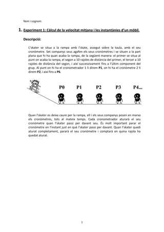 1.Experiment 1: Càlcul de la velocitat mitjana i les instantànies d’un mòbil.