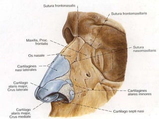 Dokumen tersebut memberikan informasi mengenai anatomi dan fisiologi hidung sebagai indera penciuman. Hidung terdiri atas hidung luar, hidung dalam, dan sinus paranasal yang dilapisi selaput lendir. Serabut saraf olfaktori di hidung dalam dapat mendeteksi aroma dan mengirimkan sinyal ke otak untuk ditafsirkan. Gangguan pada hidung dapat menyebabkan kelainan seperti anosmia, hiposmia, dan disosmia.