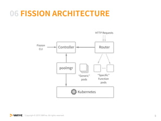 Fission is a fast serverless framework for Kubernetes that allows developers to run short-lived functions with low latency and high performance. It supports various programming languages like Go, Node.js, PHP and Python and has a cold start time of around 100ms. Fission is suitable for developers who want to set up their own serverless environment on Kubernetes and customize environment images.