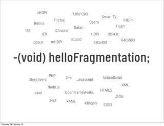 The document discusses the philosophy and process of experience design, emphasizing the integration of creativity and technology to enhance user experience. It outlines the importance of a cyclical design and development process, where each informs the other to continually improve products. Additionally, it highlights the trend towards mobile-first design principles and the need for developers to possess a strong understanding of both UX and programming skills.