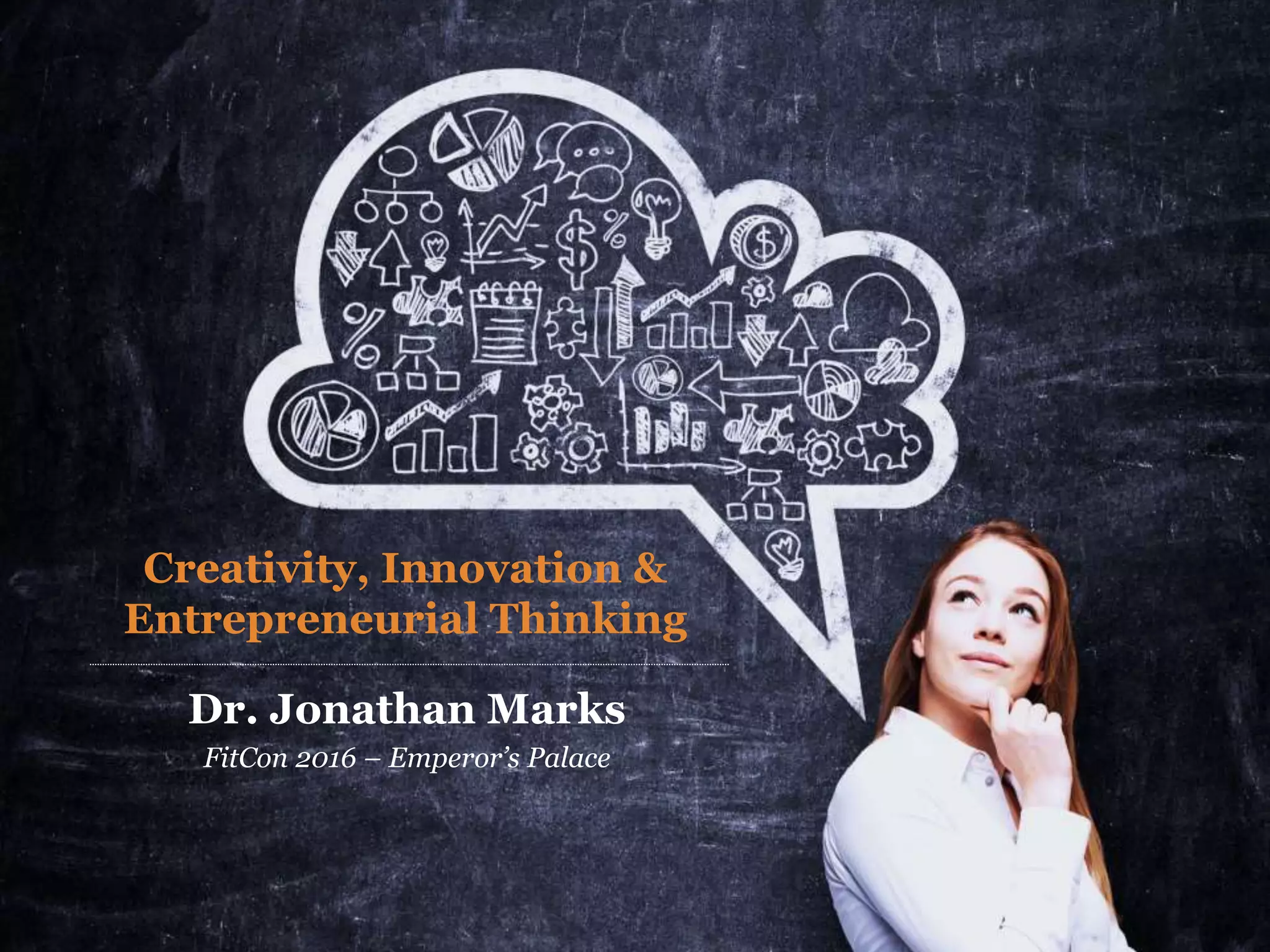 The document discusses creativity, innovation, and entrepreneurial thinking. It states that creativity involves being original and rejecting defaults, and that creativity is linked to failure as failure is part of discovery. Creativity is a process that involves collaboration. Ideas take time to evolve and emerge from the collision of hunches, and increased connectivity can lead to more creativity. Entrepreneurial thinking involves finding opportunity in adversity, doing more with less, thinking and acting flexibly, keeping things simple, including margins, and following your heart. The document also briefly mentions the Jaipur Foot.