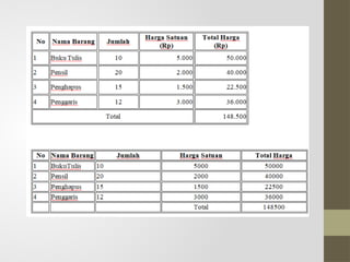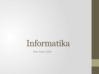 Dokumen ini menjelaskan tujuan pembelajaran fitur insert table di MS Word. Siswa diharapkan dapat memahami, membuat, dan memodifikasi tabel serta menerapkan keteraturan dalam penyusunan tabel. Hal ini bertujuan untuk menciptakan dokumen yang rapi dan terstruktur.