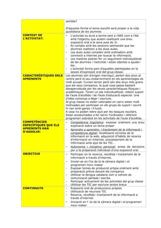- Exposició oral al grup classe de 3r.