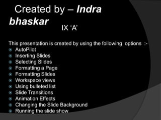 This presentation summarizes the evolution of computers across five generations from the 1940s to present. The first generation used vacuum tubes and magnetic drums. The second generation introduced transistors, replacing vacuum tubes. The third generation saw the development of integrated circuits and interaction through keyboards and monitors. The fourth generation brought microprocessors and chips, locating all components on a single chip. The fifth generation still in development focuses on artificial intelligence through parallel processing and natural language interaction.
