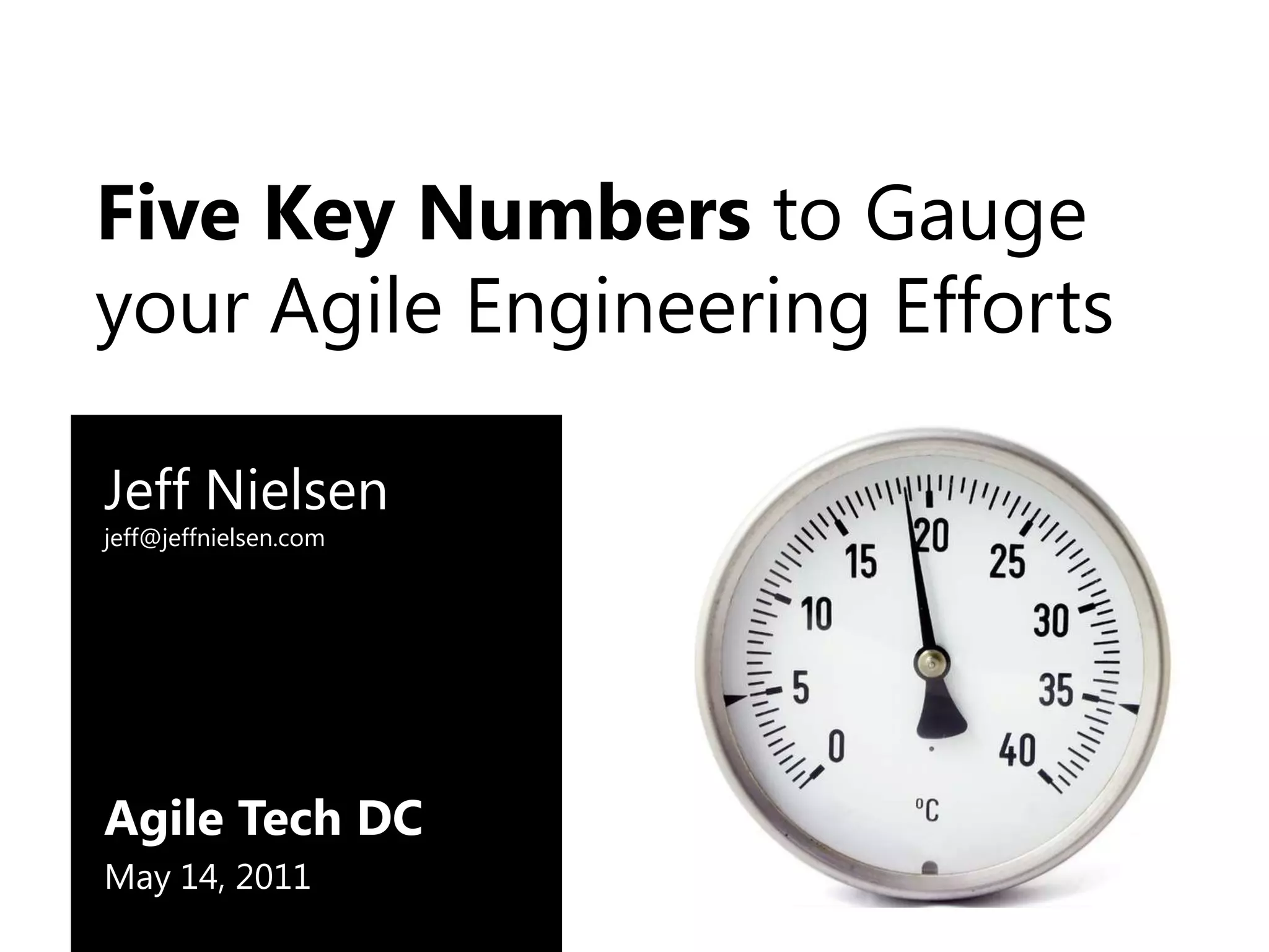 The document discusses five key metrics to measure the effectiveness of agile engineering practices: 1) How long until you see feedback from a test after changing code, 2) How many one-line code changes can be committed and tested in an hour, 3) How many team members can explain parts of the code, 4) What percentage of team members paired in the last two days, and 5) How many steps it takes to get code into production. These metrics help gauge how well practices like test-driven development and continuous integration are flattening the cost of change curve.
