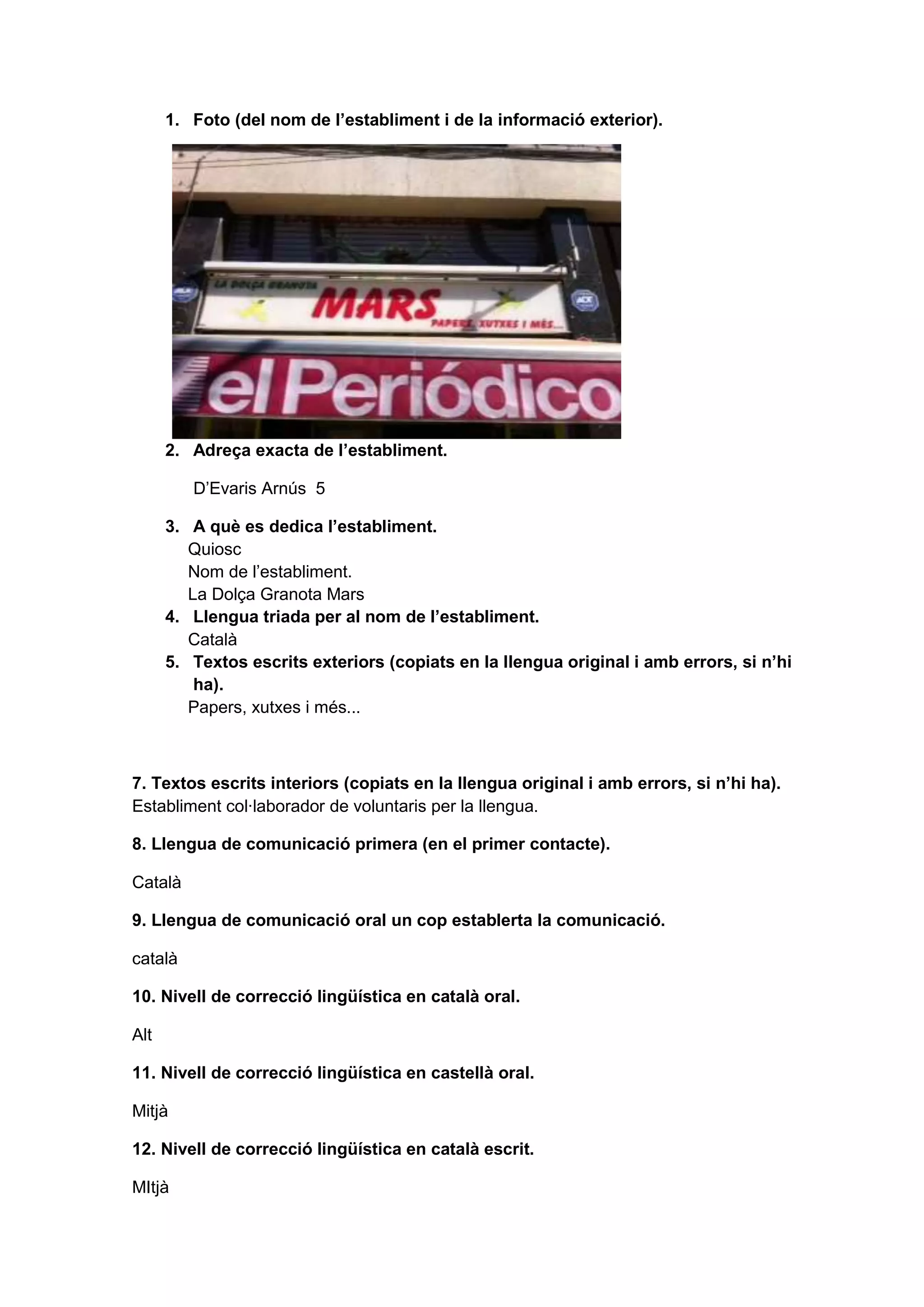 - Quina és la llengua dominant de l’establiment? Per què aquesta llengua i