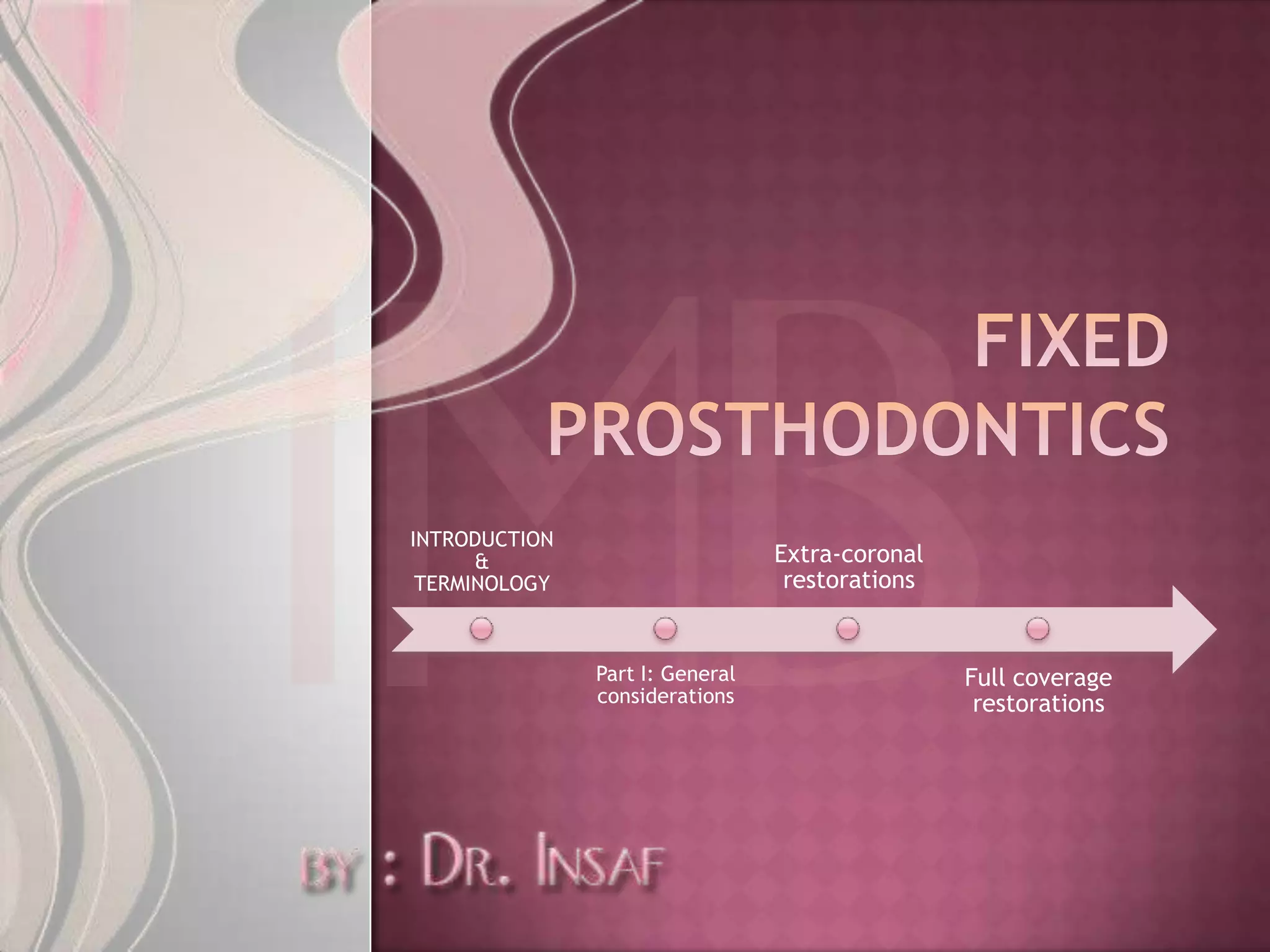 Full coverage restorations include metal crowns, porcelain jacket crowns, and metal-ceramic crowns. Metal crowns provide great strength but poor aesthetics, while porcelain jacket crowns have the best cosmetic results but risk of fracture. Metal-ceramic crowns combine the strength of metal with the aesthetics of porcelain, making them suitable for teeth requiring esthetics or with extensive destruction.