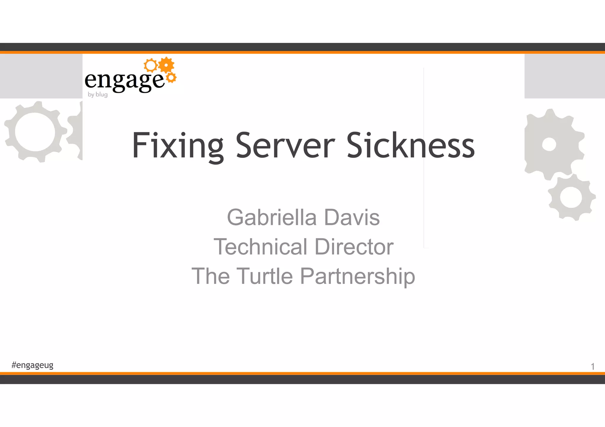 The document is a comprehensive guide on troubleshooting and optimizing server performance, particularly for Domino servers. It discusses common issues like server sickness caused by vulnerabilities, aging configurations, and user habits, along with tools and best practices for monitoring and maintaining server health. Additionally, it emphasizes the importance of proactive management and configuration tuning to ensure ongoing server reliability and efficiency.