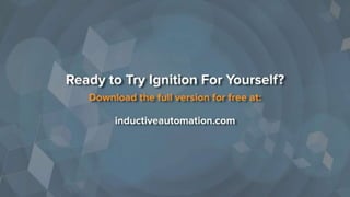 The document provides an overview of a presentation on Ignition, a new SCADA platform built for speed. It introduces Ignition and discusses common pain points with traditional SCADA systems, such as lengthy project start times, development processes, and deployment of updates. Ignition aims to address these issues by offering features like rapid installation, unlimited concurrent development, and single-click deployment without taking clients offline. The presentation also includes demos and a panel discussion from system integrators on how Ignition has helped reduce costs and increase efficiency.