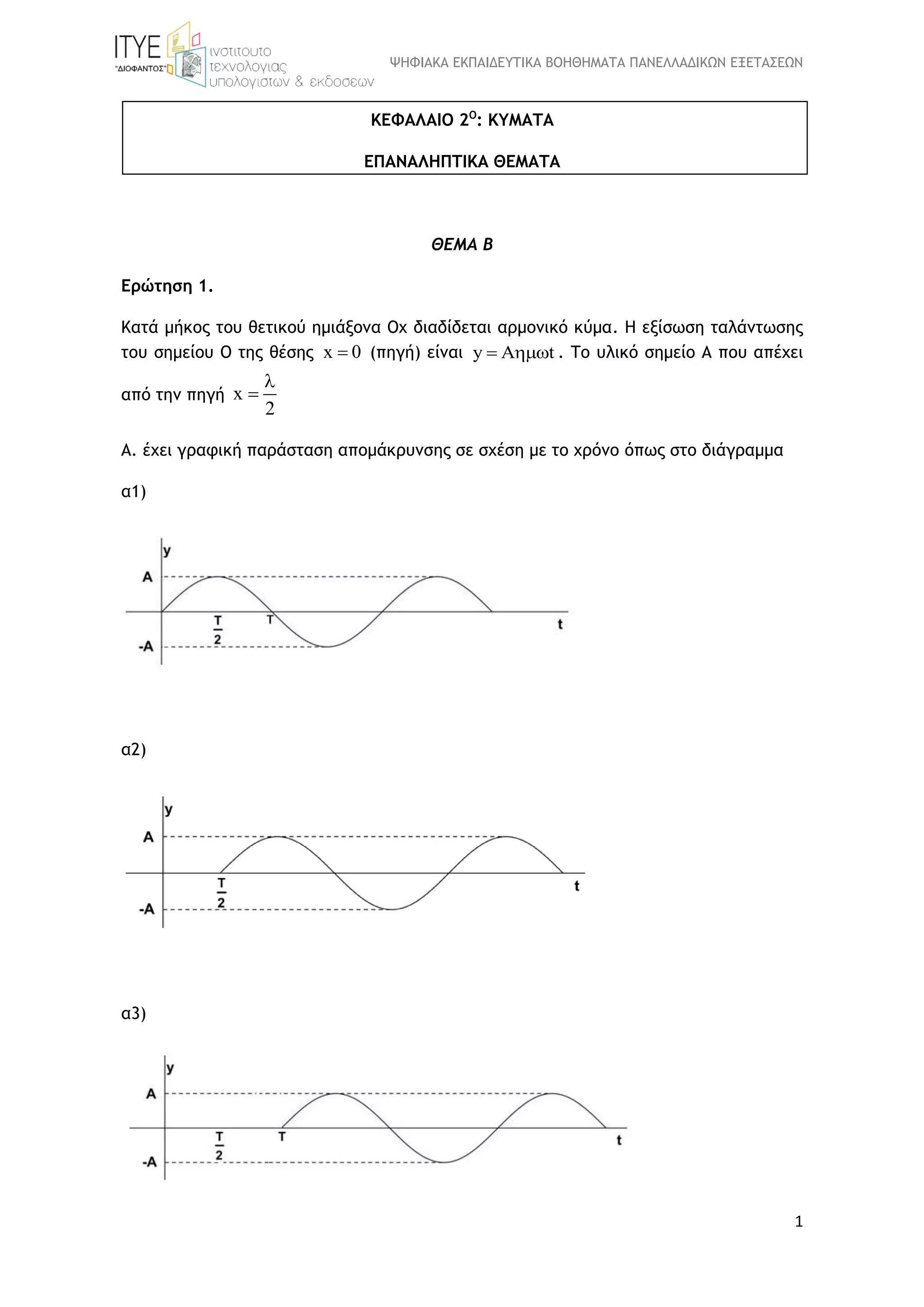 του σημείου Ο της θέσης x 0 (πηγή) είναι y A t . Το υλικό σημείο Α που απέχει