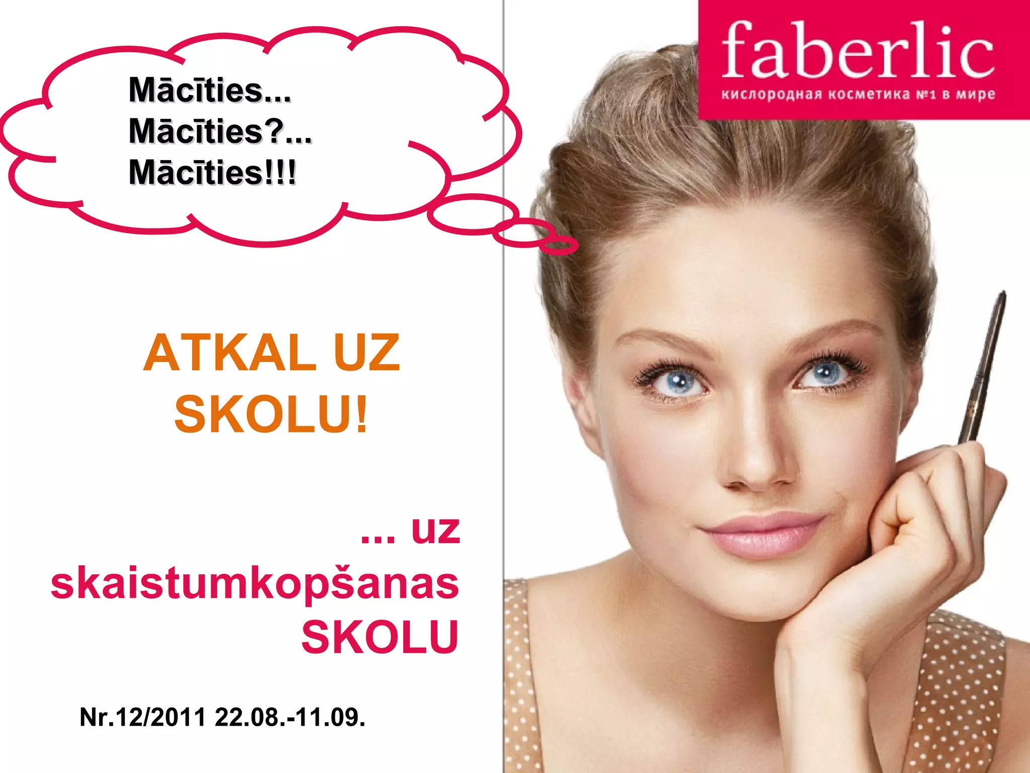 #2 Faberlic piedāvā jauno katalogu . Mācīties vienmēr ir interesanti ! Bet galvenais – nekad nav par vēlu . Aicinām Jūs uz Faberlic Skaistumkopšanas Skolu . Apmeklējot visas mūsu skaistumkopšanas nodarbības , jūs paši varēsit ielikt sev atzīmi – atliek tikai paskatīties uz sevi spogulī!