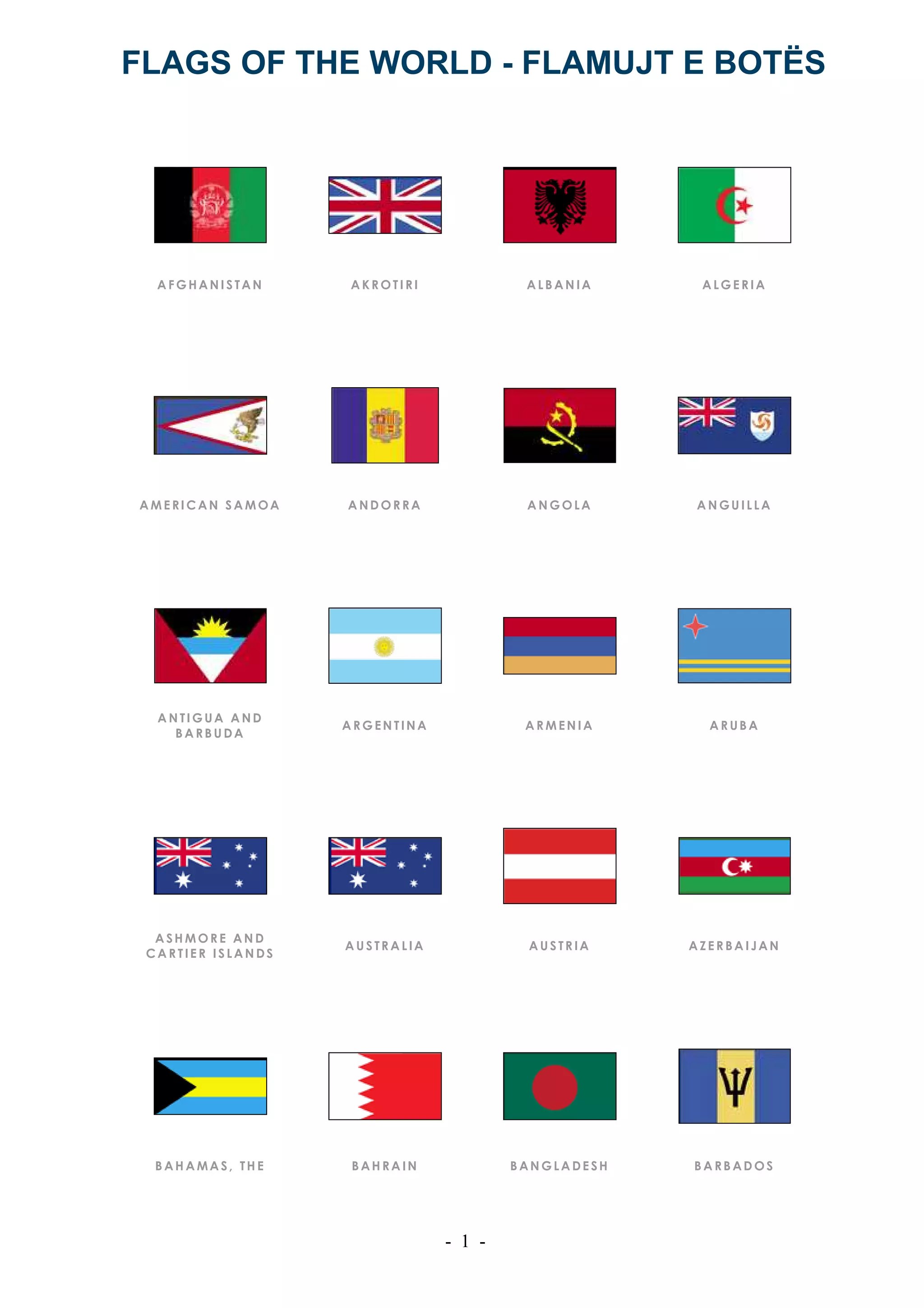 This document contains a list of flags from countries and territories around the world arranged alphabetically from Afghanistan to Zimbabwe. It includes well-known nations as well as some lesser known territories and islands. The flags are identified simply by the name of the country or territory in English.