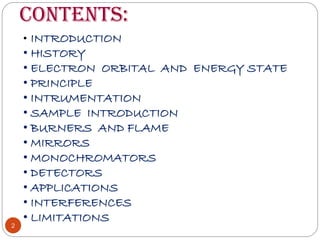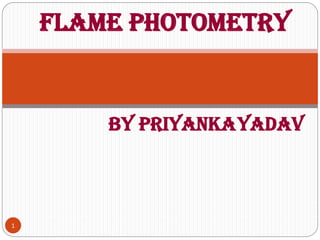 The document provides a comprehensive overview of flame photometry, explaining its definition, historical background, underlying principles, and instrumentation. It details the processes involved in sample introduction, different types of burners, and detectors used in the analysis of metallic elements based on their characteristic emission wavelengths. Additionally, it addresses applications, interferences, and limitations of the technique, emphasizing its effectiveness primarily for alkali and alkaline earth metals.