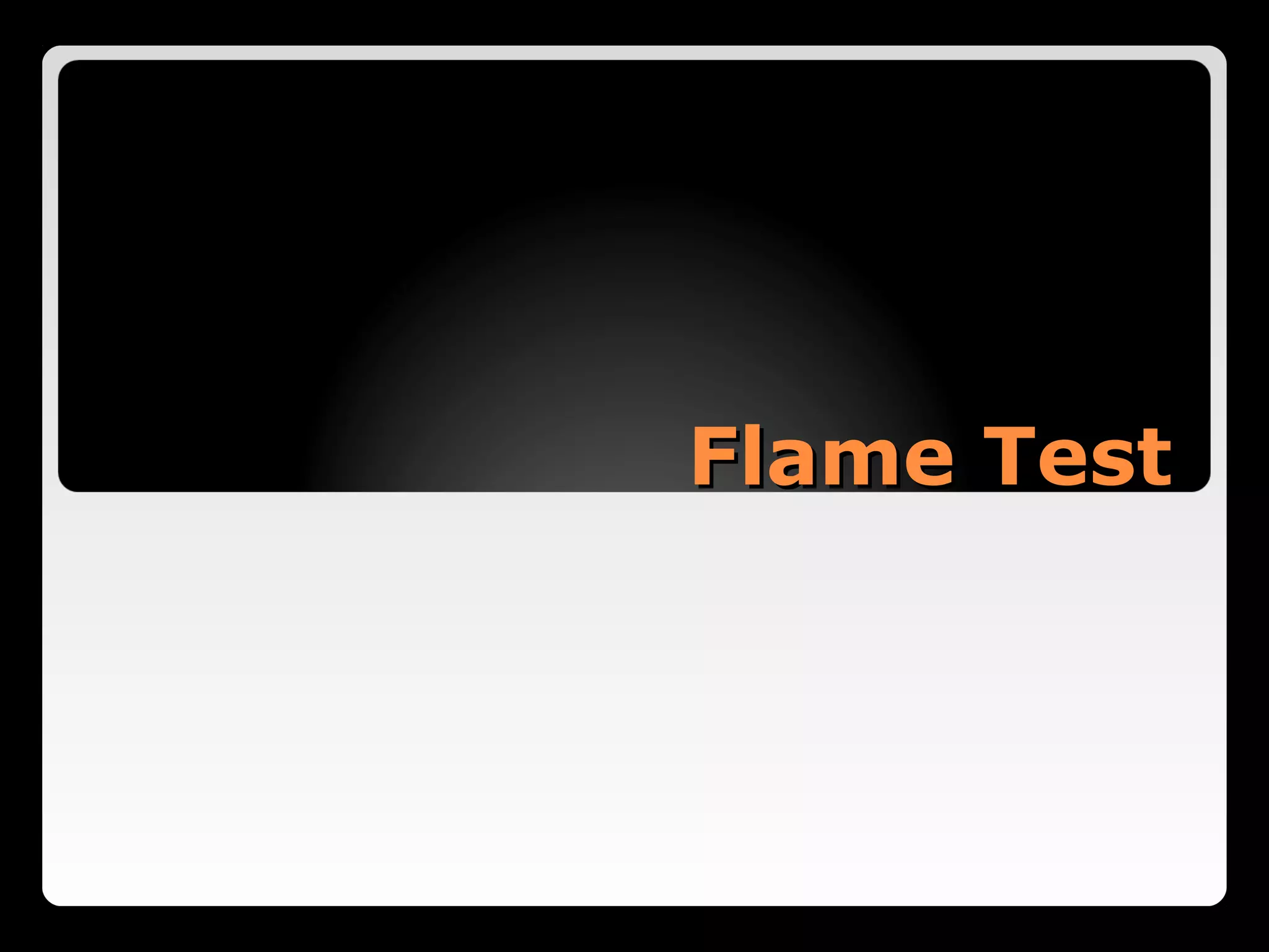 This document describes the procedure and observations of a flame test experiment. The experiment involves placing various metal salt solutions on a nichrome wire and exposing the wire to a flame to observe the color of the flame. Each metal ion produces a unique color that can be used to identify the metal. Some difficulties noted are that some colors are similar, and samples with multiple metals produce mixed colors that are difficult to interpret. Real-world applications of flame tests discussed are in fireworks to produce various colored explosions, and in forensic science to identify metals in blood samples.