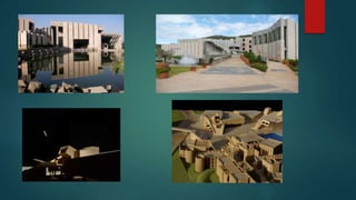 The document describes the Flame University campus, designed by Vastu Shilpa Consultants, highlighting its innovative architecture that promotes outdoor learning and social interaction. The campus features a library with a wedge-like profile, various educational spaces, and extensive recreational facilities, all set against the backdrop of the Western Ghats. With a focus on interdisciplinary education, the university aims to blend academic and community life, creating an environment conducive to holistic learning.