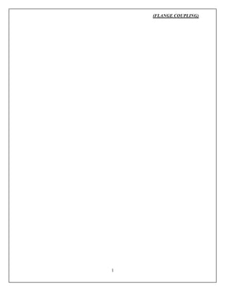 The document discusses the design of a rigid flange coupling to transmit 250 N-m of torque between two coaxial shafts. It first sizes the shaft diameter as 25 mm. It then designs each component: