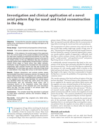 1) The document describes a novel axial pattern flap for nasal and facial reconstruction in dogs. The flap is based on the commissure of the lip and receives blood supply from the angularis oris artery and other arteries.