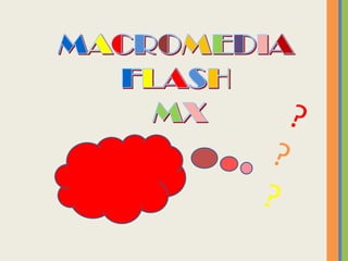 Dokumen ini membincangkan penggunaan perisian Macromedia Flash MX untuk pengarangan multimedia interaktif. Ia merangkumi pengenalan kepada antaramuka dan alat dalam perisian, serta langkah-langkah untuk menghasilkan persembahan interaktif. Terdapat unit pembelajaran yang fokus kepada aspek-aspek seperti ciri asas persembahan, penggunaan teks, dan grafik.