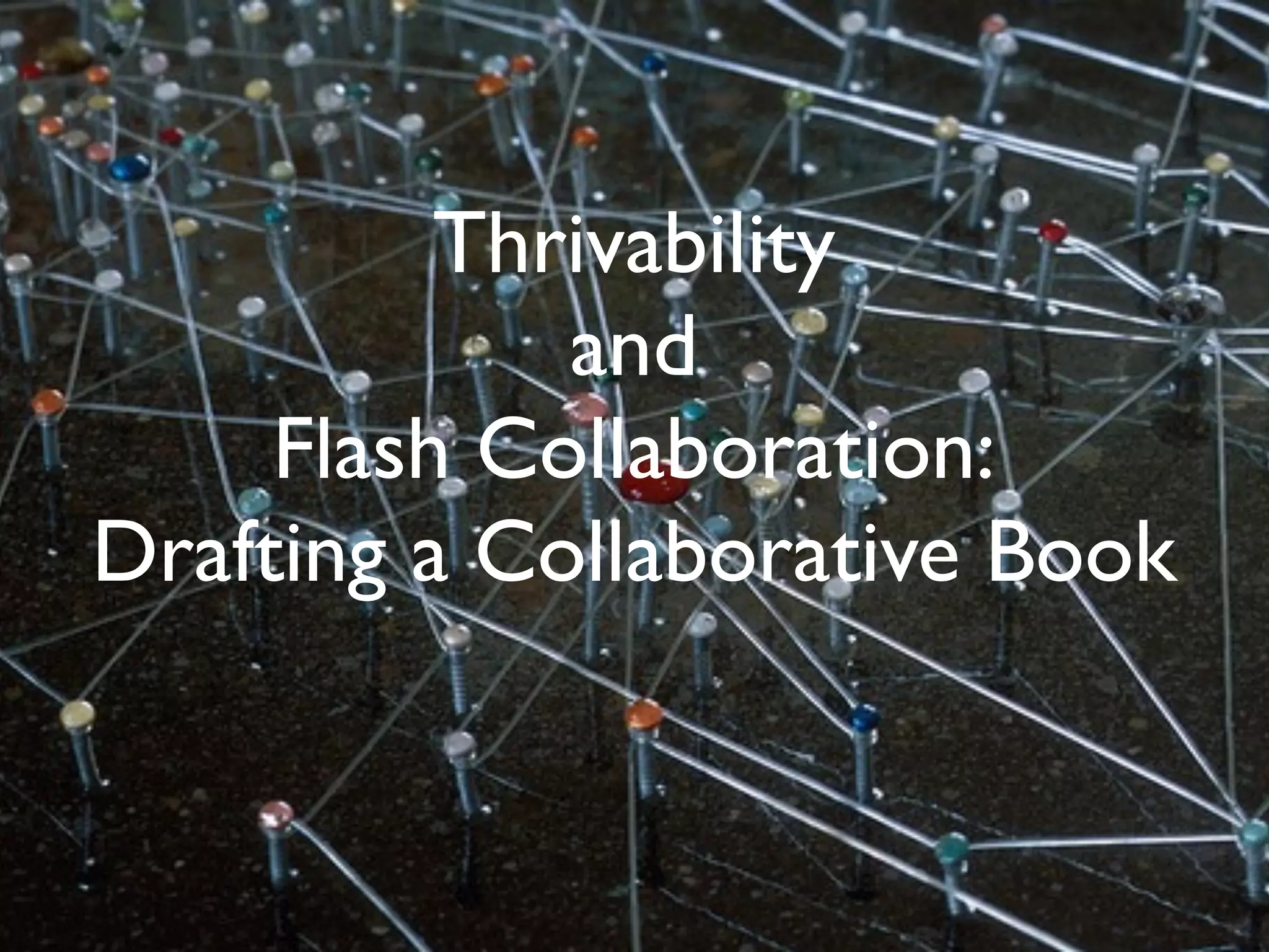 The document is a collaborative sketch titled 'Thrivability,' curated by Jean Russell, showcasing contributions from over 64 authors and artists, and exploring the concept of creating a flourishing world through diverse perspectives. It encapsulates the ideas of collaboration, hope, and shifting societal paradigms toward sustainable practices, emphasizing the need for a collective approach to thrive. Contributors span various fields, reflecting a broad spectrum of insights on thriving beyond mere survival, aiming to inspire a global conversation about what it means to thrive together.