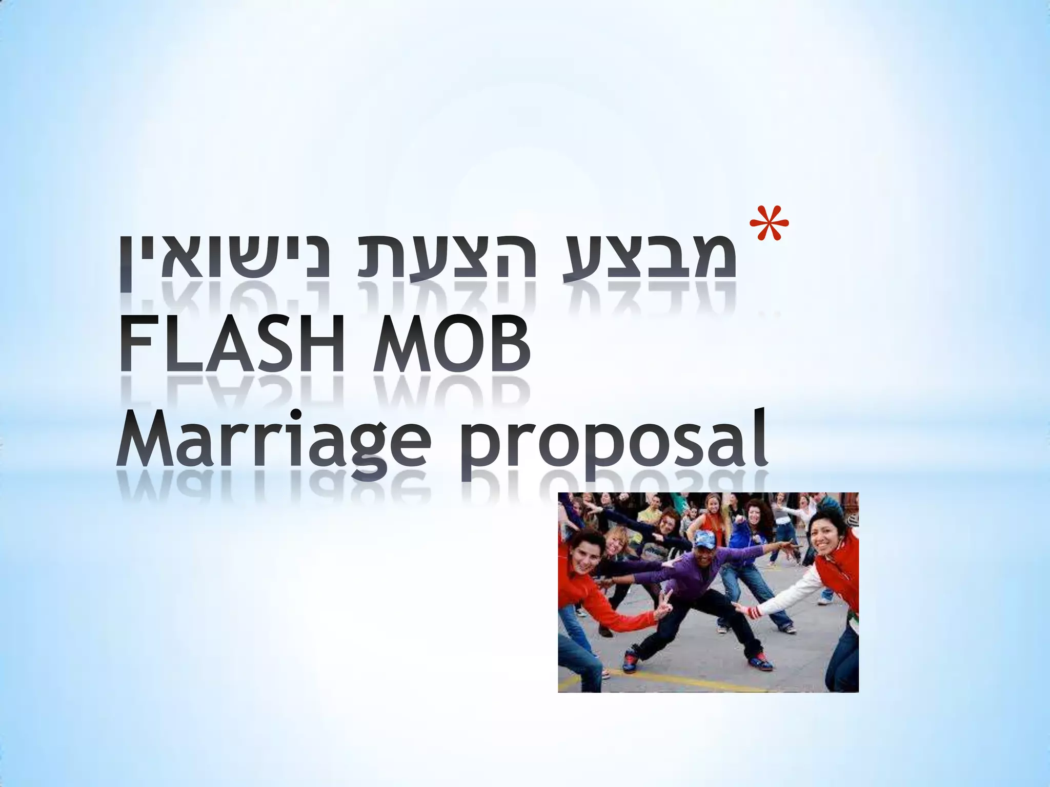 This document provides details about an upcoming flash mob event to celebrate an engaged couple, Assaf and Gosia. It instructs participants to meet in Dizingof Square on Friday, wearing white shirts and acting naturally like passersby. When music starts, they will join a dance choreographed to the provided song. A tutorial video will be posted on Facebook to help people learn the dance moves. All are encouraged to join in celebrating the couple's engagement.